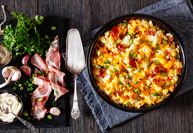 You’ll never want to eat roasted cauliflower any other way once you try this tasty recipe. Bacon, sour cream and sharp Cheddar cheese coat good-for-you cauliflower in deliciousness for an easy side that will make everyone actually want to eat their vegetables.